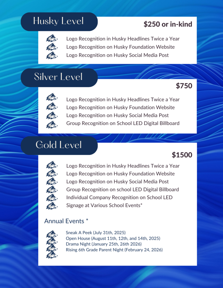We offer a range of opportunities to recognize your company through the entire 2025-26 academic school year.